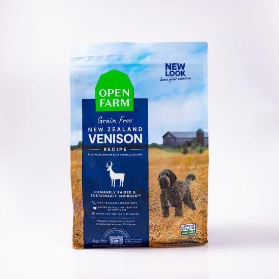 - 鹿肉、エンドウマメ、白身魚粉、サツマイモ、ニシン粉、ヒヨコマメ、アカレンズマメ、ミレンズマメ、ココナッツオイル、亜麻仁、カボチャ、ナチュラルベニソンフレーバー、ニンジン、リンゴ、ヒマワリ油、サーモンオイル、クランベリー、チコリーの根、塩、天日干しアルファルファ、塩化コリン、ビタミンEサプリメント、ビタミンAサプリメント、ナイアシンサプリメント、パントテン酸カルシウム、リボフラビンサプリメント、ビタミンD3サプリメント、硝酸チアミン、ビタミンB12サプリメント、塩酸ピリドキシン、葉酸、キレート亜鉛、キレート鉄、キレート銅、キレートマンガン、セレン酵母、ヨウ素酸カルシウム、タウリン、ミックストコフェロール(天然由来の酸化防止剤として使用)、シナモン、ターメリック、ローズマリー抽出物