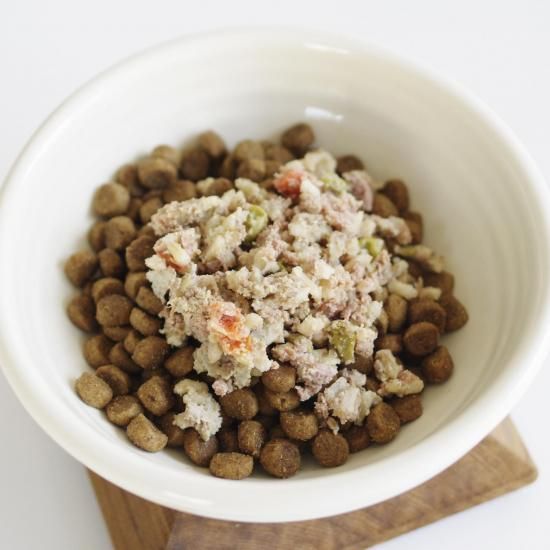 - 牛肉、玄米、ニンジン、エンドウ豆、牛ハツ、卵、雑穀粉、卵殻粉、塩、植物油、水
