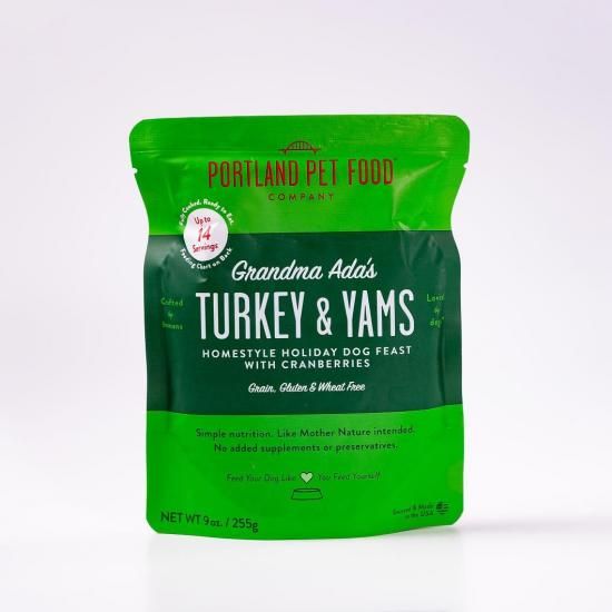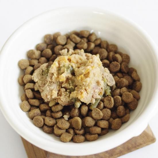 PPFCの「ターキーレシピ」は、11種類の食材を丸ごと使用した栄養価の高い手づくりフードです。お肉はUSDA(米国農務省)の認証を受けた SPプロビジョンズ社・カスケードファーム(Cascade Farm) から提供されるオーガニックターキーと鶏の砂肝を使用。さらにサツマイモ、サヤインゲン、卵、クランベリー、リンゴなどの地元産食材を組み合わせ、栄養バランスを考え抜いた一品に仕上げています。もちろん、レンダリング加工品や人工ホルモン、抗生物質などは一切不使用。無添加にこだわった安心のフードです。